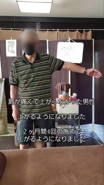 2週間~3週間のペースで通って頂いて、少しずつ肩が上がるようになりました✨