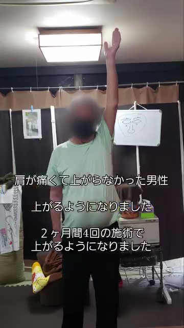 一年位前、近所の男性の方から「肩が二年くらい前から上がらなくなったので、何とかしてほしい」とお願いされました。